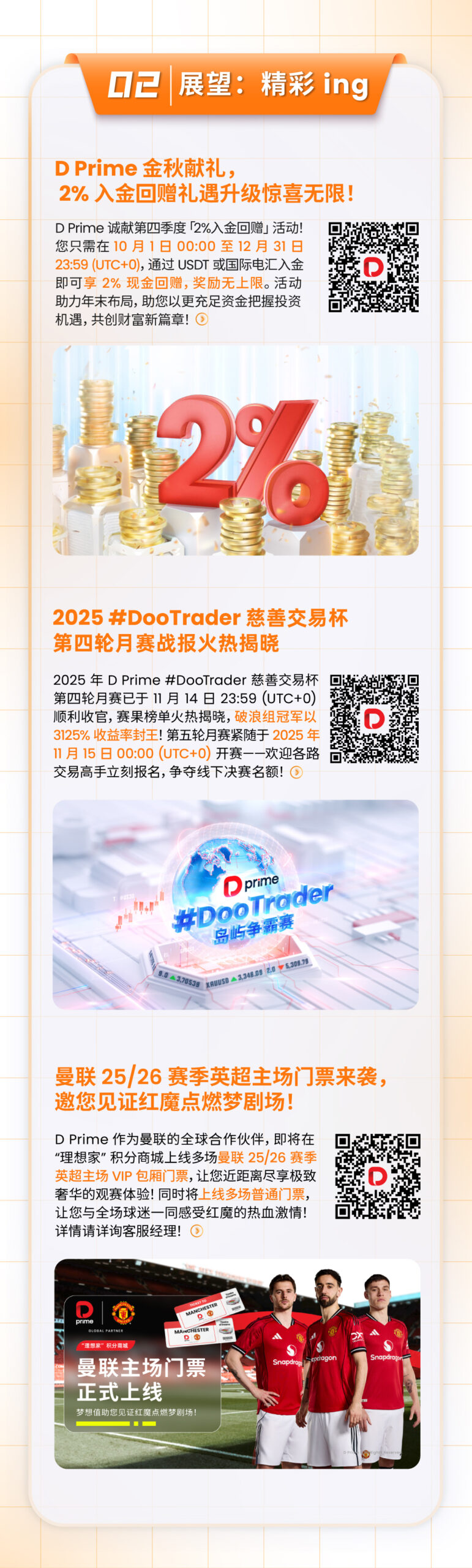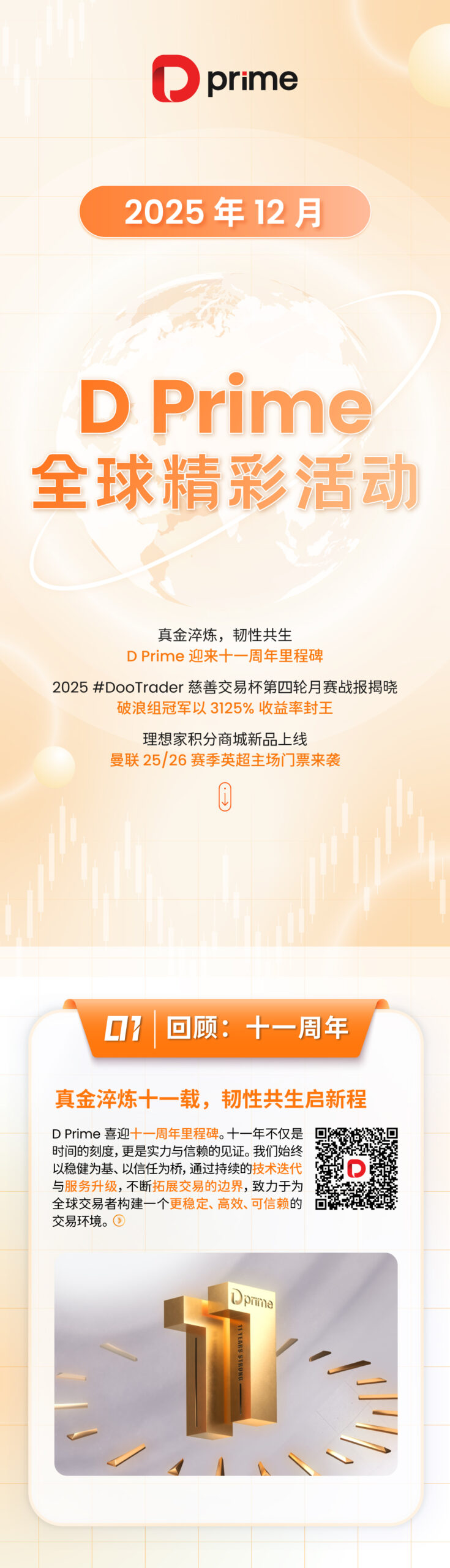 凭借强大的金融科技基础设施、紧密的合作伙伴关系、资深的技术团队,D Prime 始终为投资者提供安全可靠的交易环境、具有竞争力的交易成本、极速的交易执行通道,在 MT5、MT4、TradingView、D Prime InTrade 等多个行业领先的交易终端上提供超过 1 万种交易产品,支持 150 多种不同货币的存取款方式,7*24 小时的多语言客户服务。