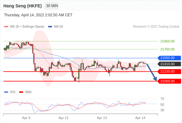 Short positions below 21550.00 with targets at 21230.00 & 21000.00 in extension.