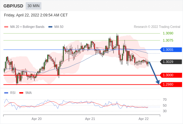 Short positions below 1.3055 with targets at 1.3000 & 1.2980 in extension.