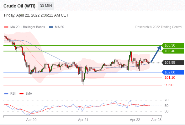Long positions above 102.00 with targets at 105.40 & 106.30 in extension.