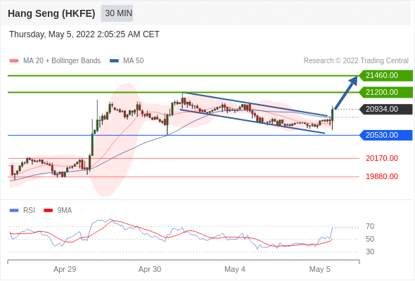 Long positions above 20530.00 with targets at 21200.00 & 21460.00 in extension.