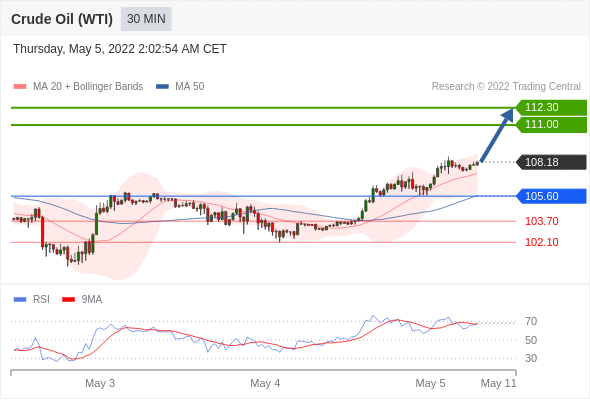 Long positions above 105.60 with targets at 111.00 & 112.30 in extension.