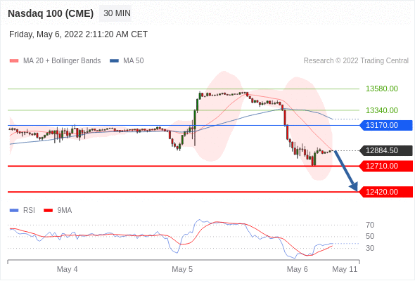 As long as the resistance at 13170.00 is not surpassed, the risk of the break below 12710.00 remains high.