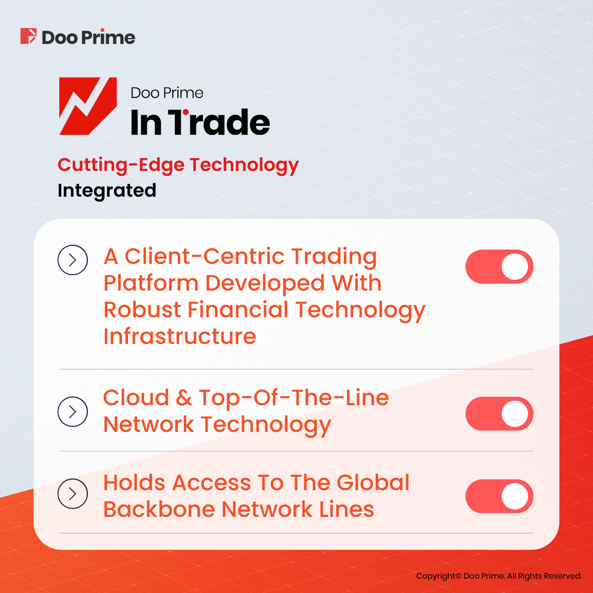 Doo Prime’s vision and mission are to become a financial technology-focused broker, streamlining international global financial products investment.