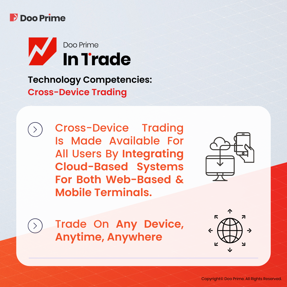On Doo Prime InTrade, cross-device trading is made available for all users by integrating cloud-based systems for both web-based and mobile terminals.