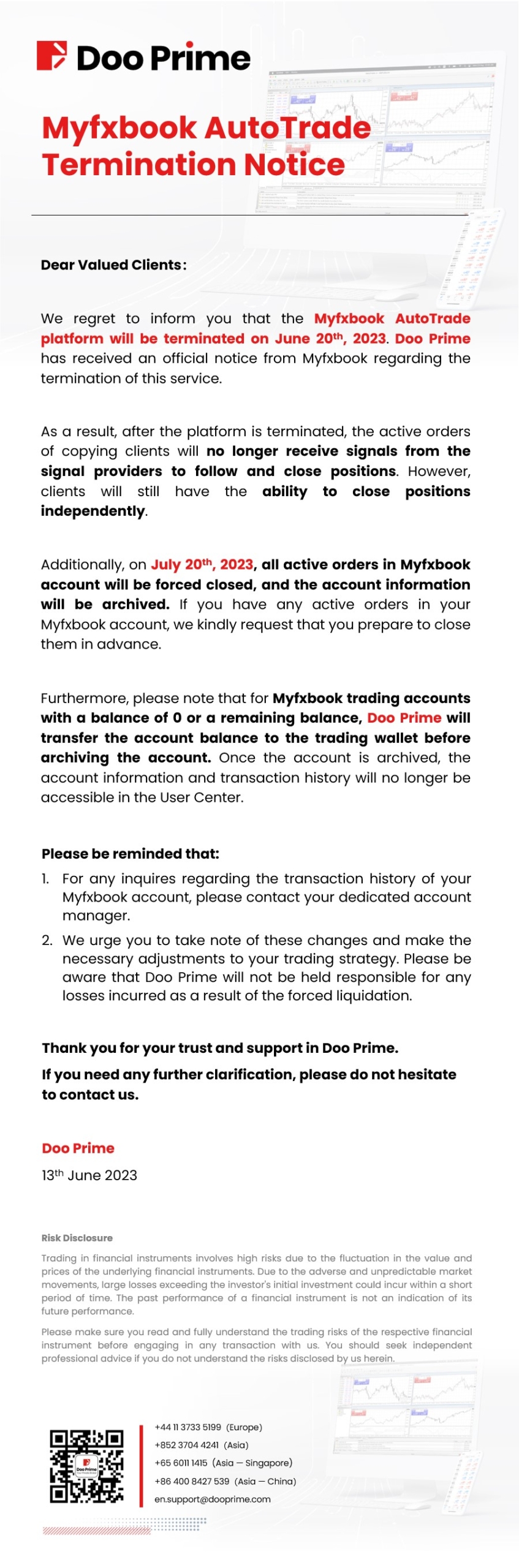 Doo Prime Myfxbook AutoTrade Termination Notice