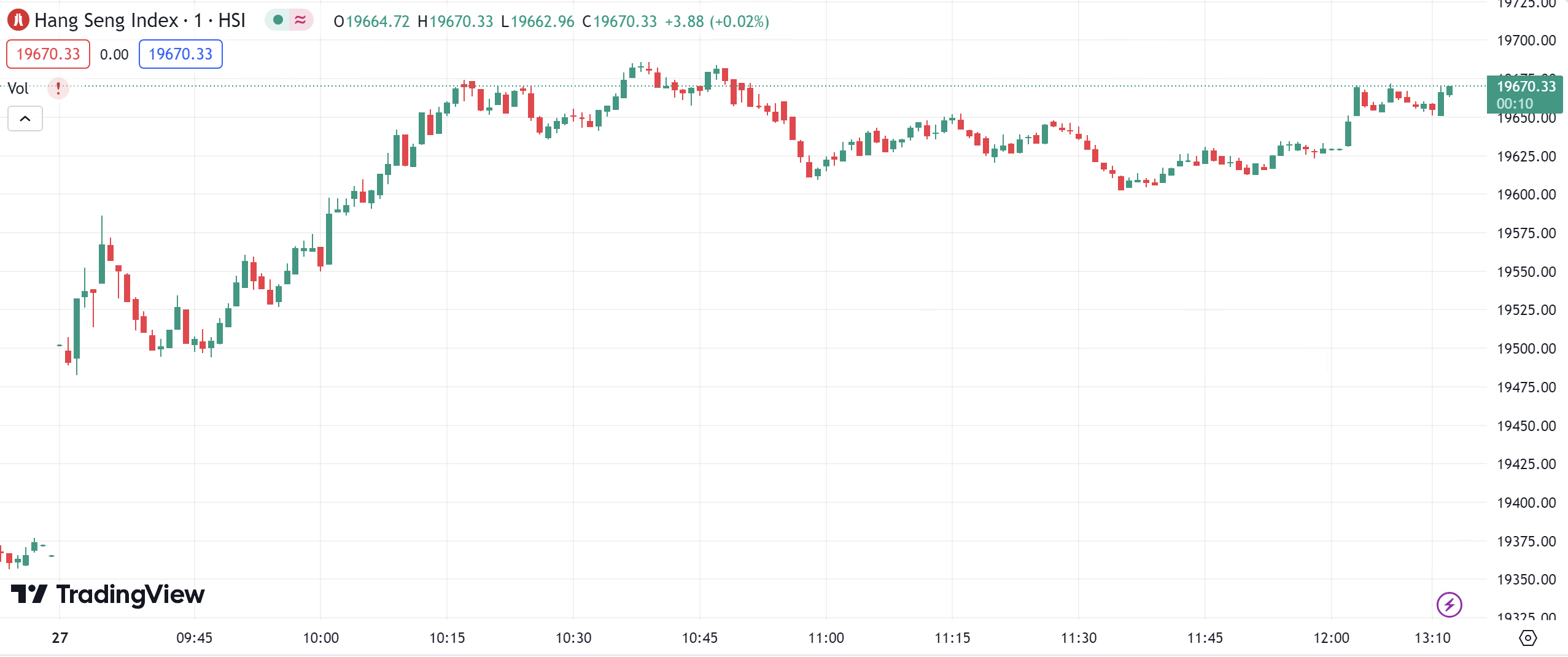 The Hang Seng Index extended its gains to reach a high of 19,685, rising by up to 320 points and remained hovering near the high levels.