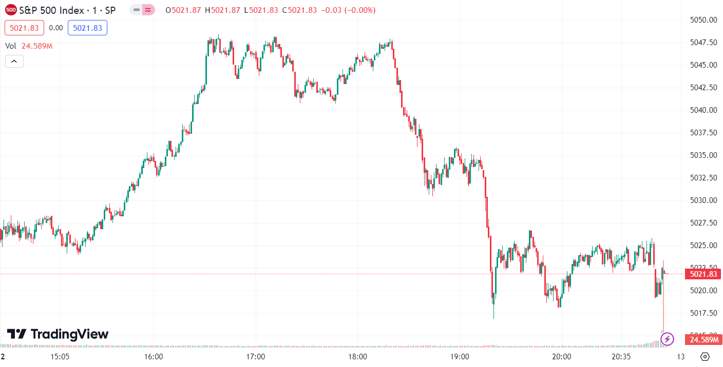 - S&P 500 Index fell by 4.77 points, or 0.09%, to close at 5,021.84 points.