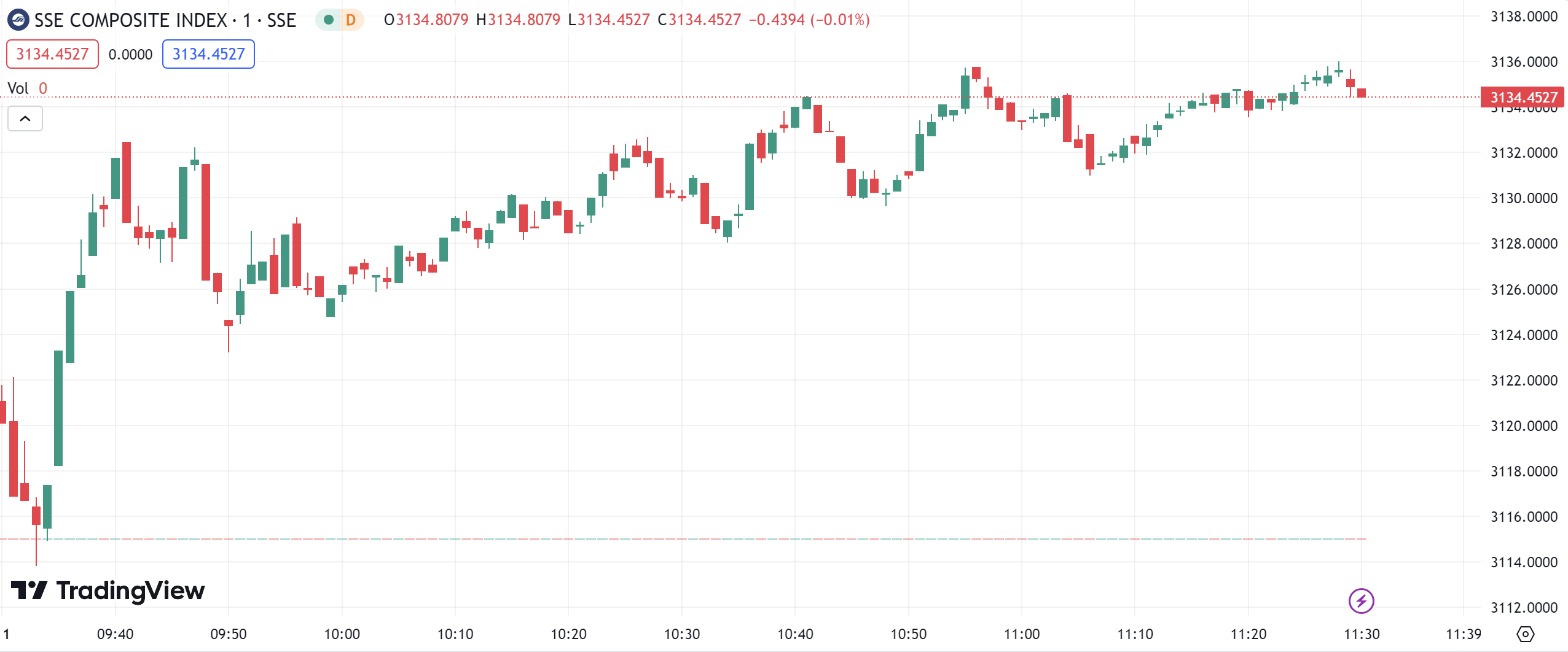 - Shanghai Composite Index (SHCOMP) rose by 0.57%, closing at 3,134.45 points.