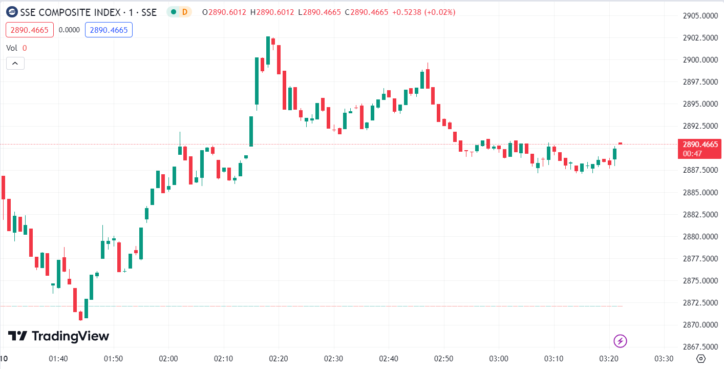 - Shanghai Composite Index (SHCOMP) fell by 0.21%, closing at 2,887.18 points.