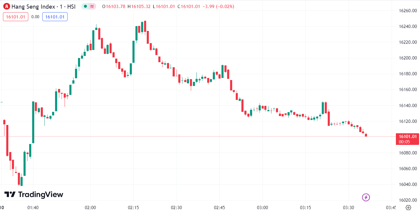 - Hang Seng Index (HSI) dropped by 0.42%, closing at 16,122.67 points.