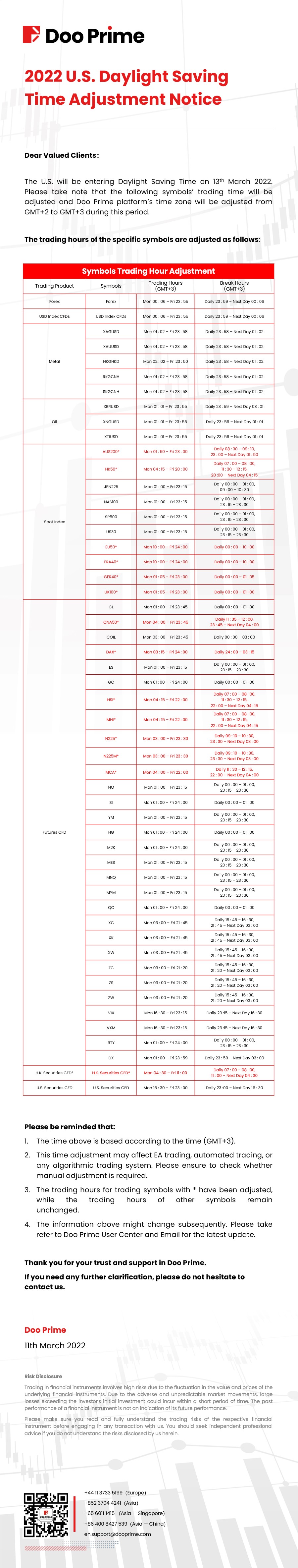 2022-03-11 | Trading Hours Adjustment