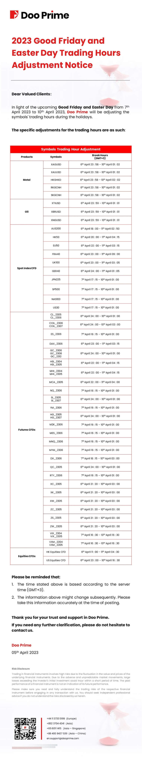 2023-04-05 | Holiday Hours , Trading Hours Adjustment