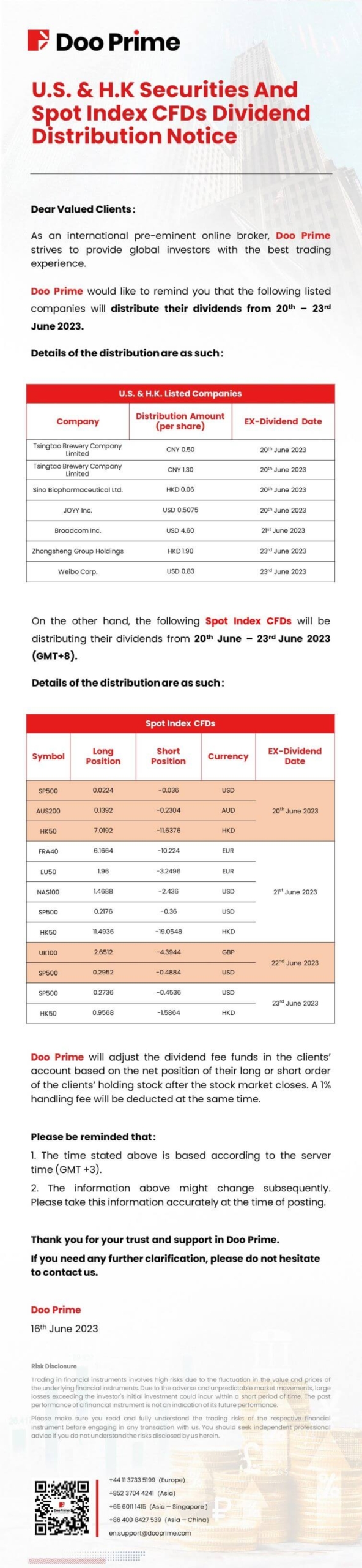 2023-06-16 | Dividend Distribution Notice , Securities , Spot Index