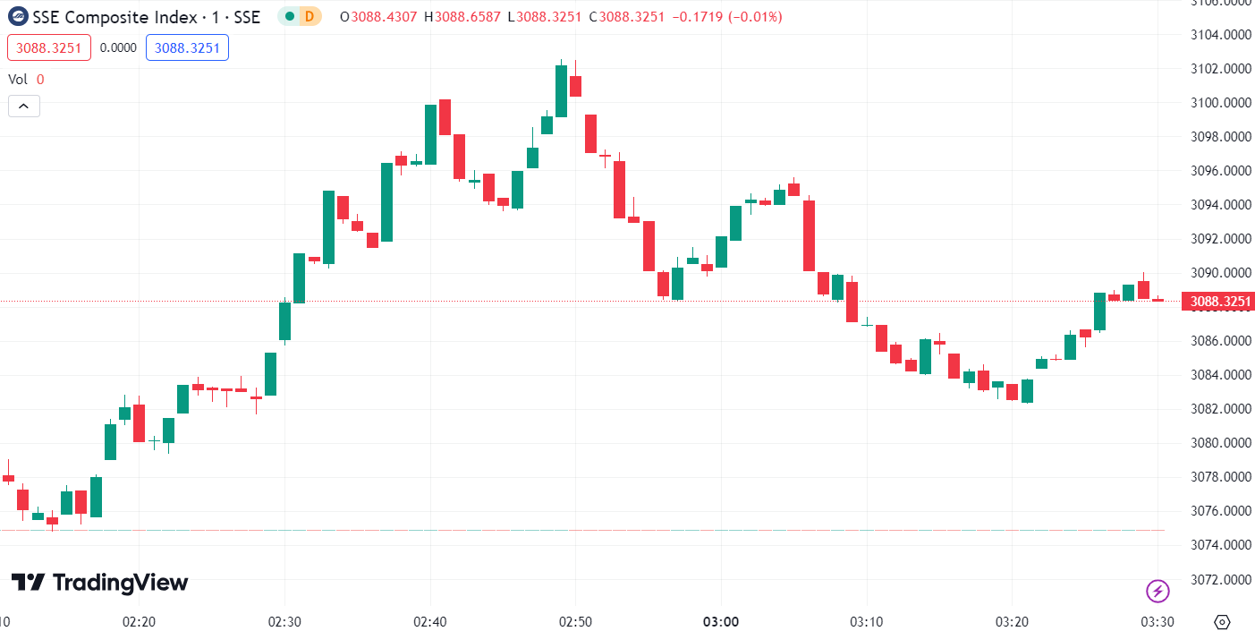 - Shanghai Composite Index (SHCOMP) up 0.55%, to 3,088.33.