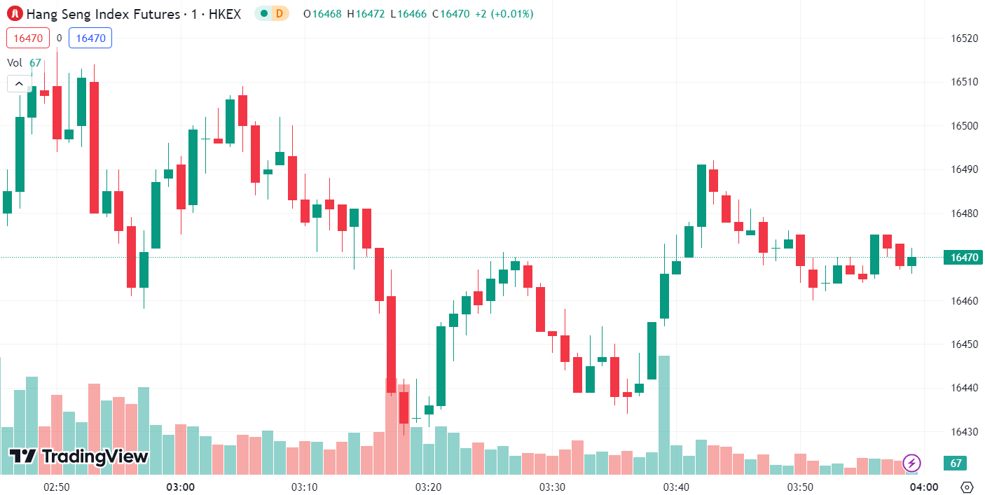 - Hang Seng Index (HSI) rose 1.34%, to 16,469.29.