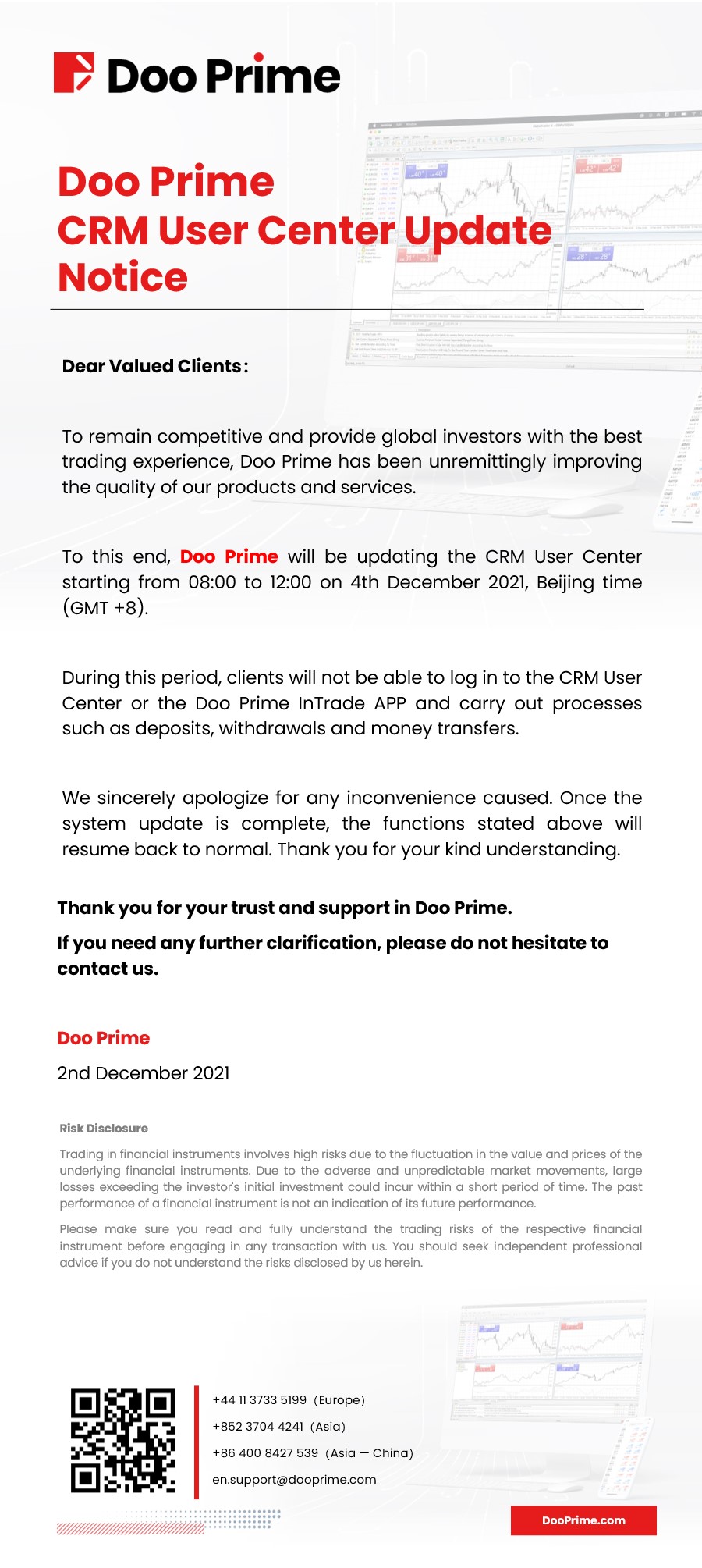 Doo Prime CRM User Center Update Notice