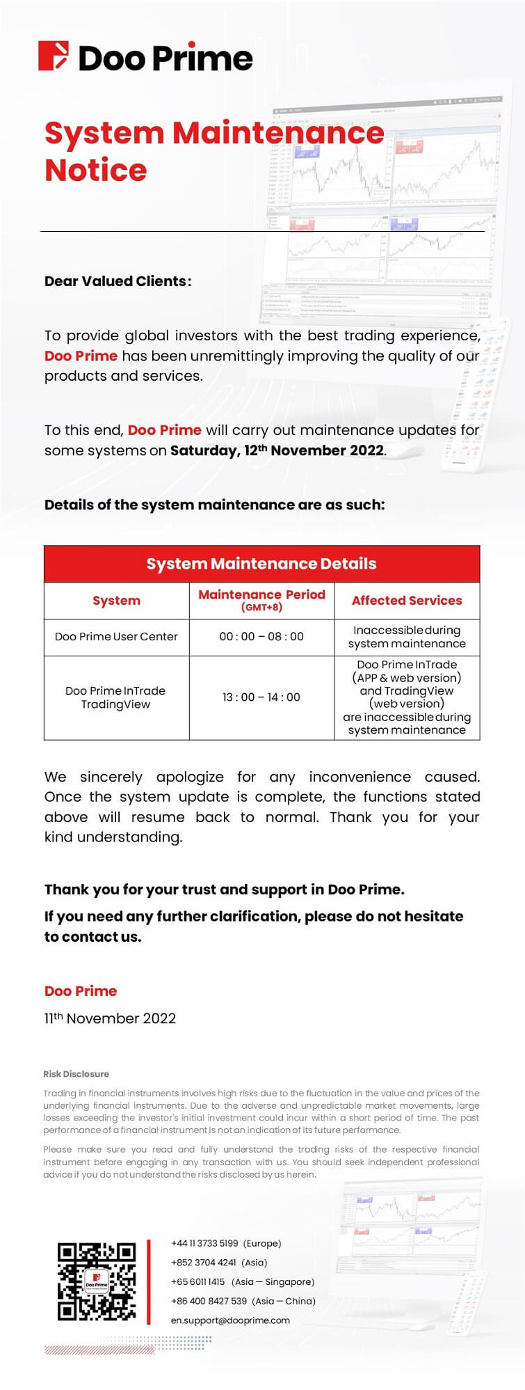 2022-11-11 | D Prime InTrade , D Prime User Center , Maintenance Notice