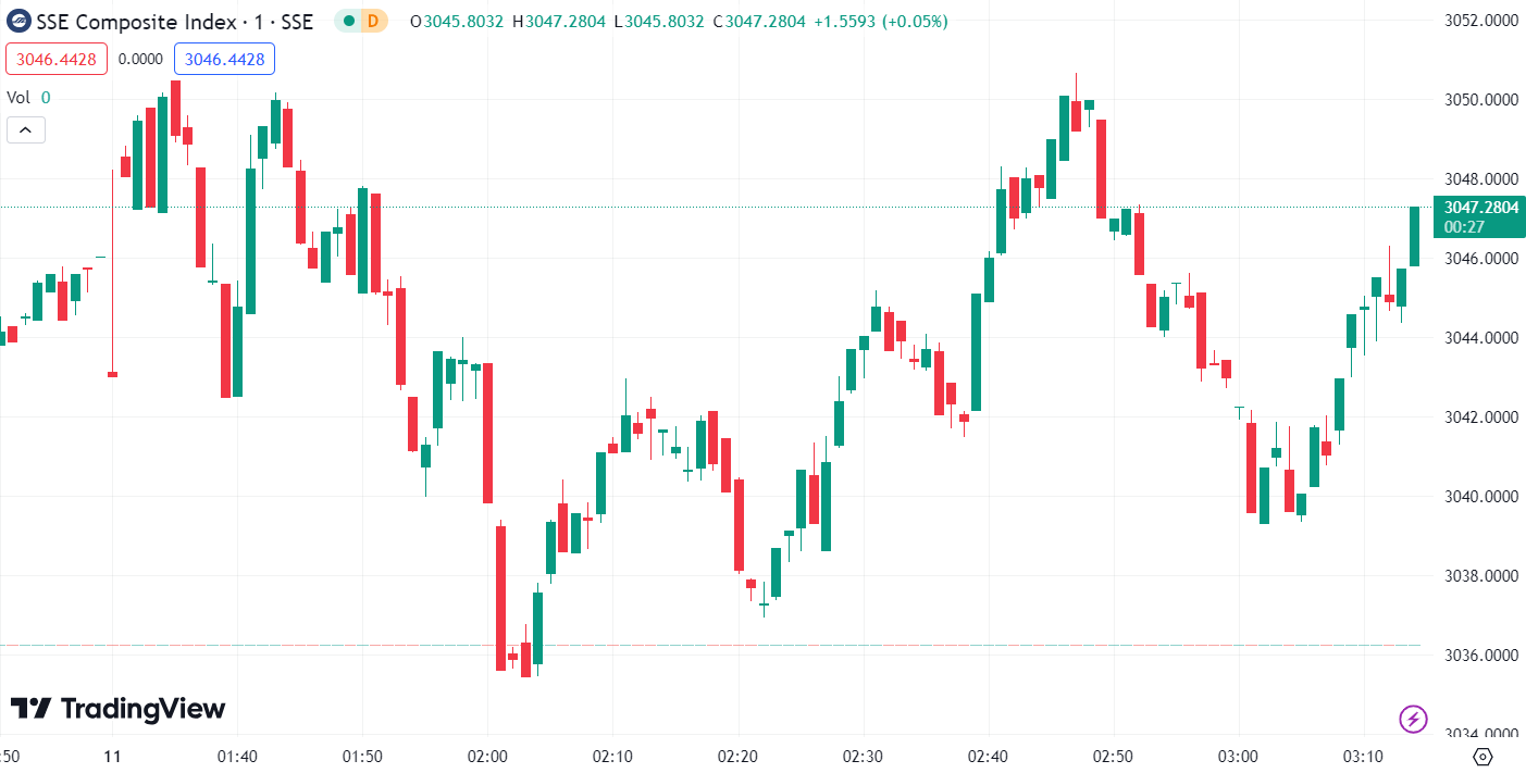 • Shanghai Composite Index (SHCOMP) rose by 0.21% to close at 3,052.28.