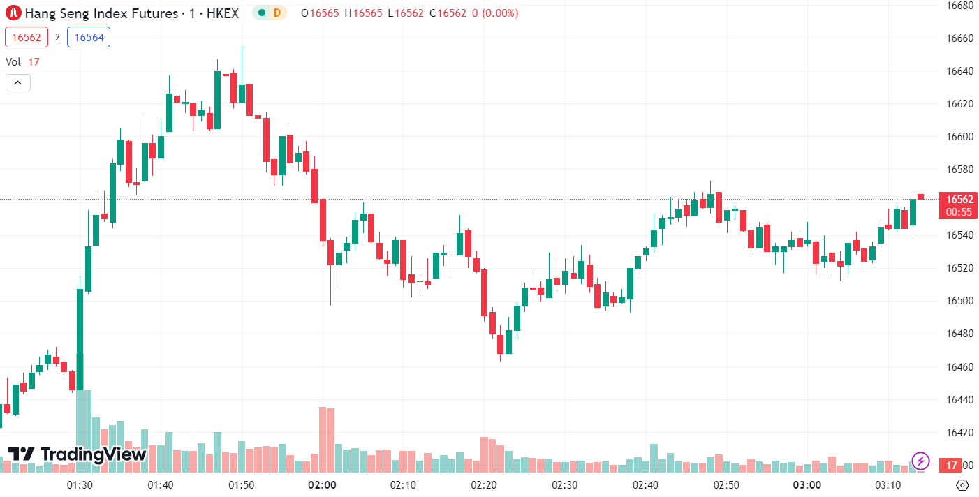 • Hang Seng Index (HSI) rose by 1.28% to close at 16,562.98.