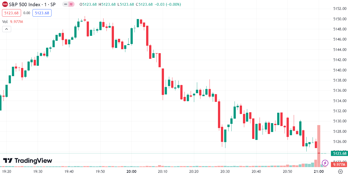 • S&P 500 index fell by 33.67 points, or 0.65%, to close at 5,123.69.
