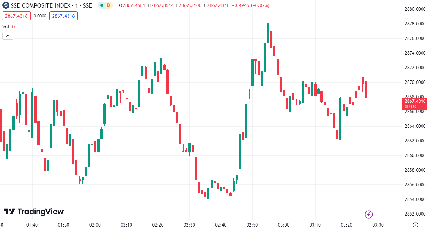 - Shanghai Composite Index (SHCOMP) declined by 0.62% to 2865.6.