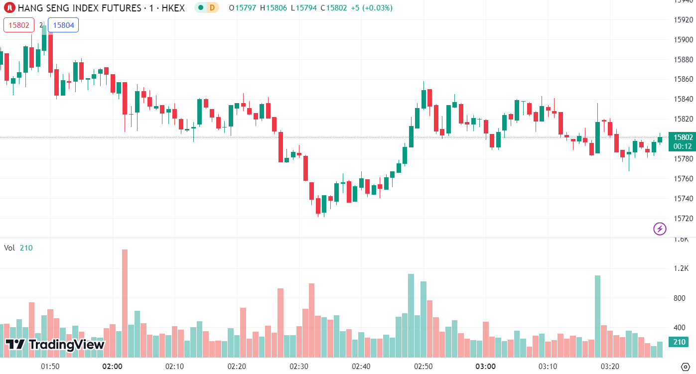 - Hang Seng Index (HSI) dropped by 1.95% to 15,764.13.