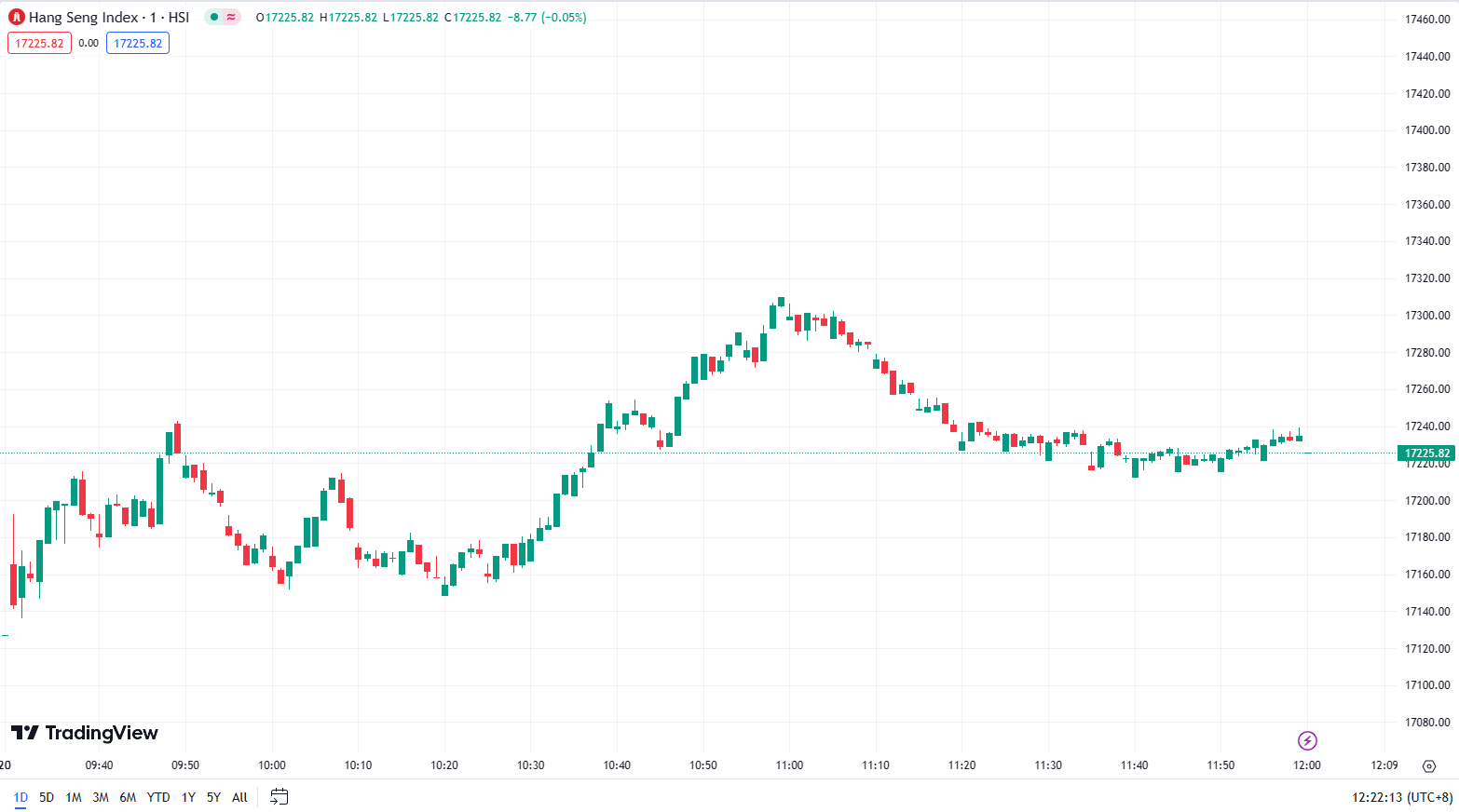 - Hang Seng Index (HSI) fell by 0.41%, closing at 17,225.82 points.