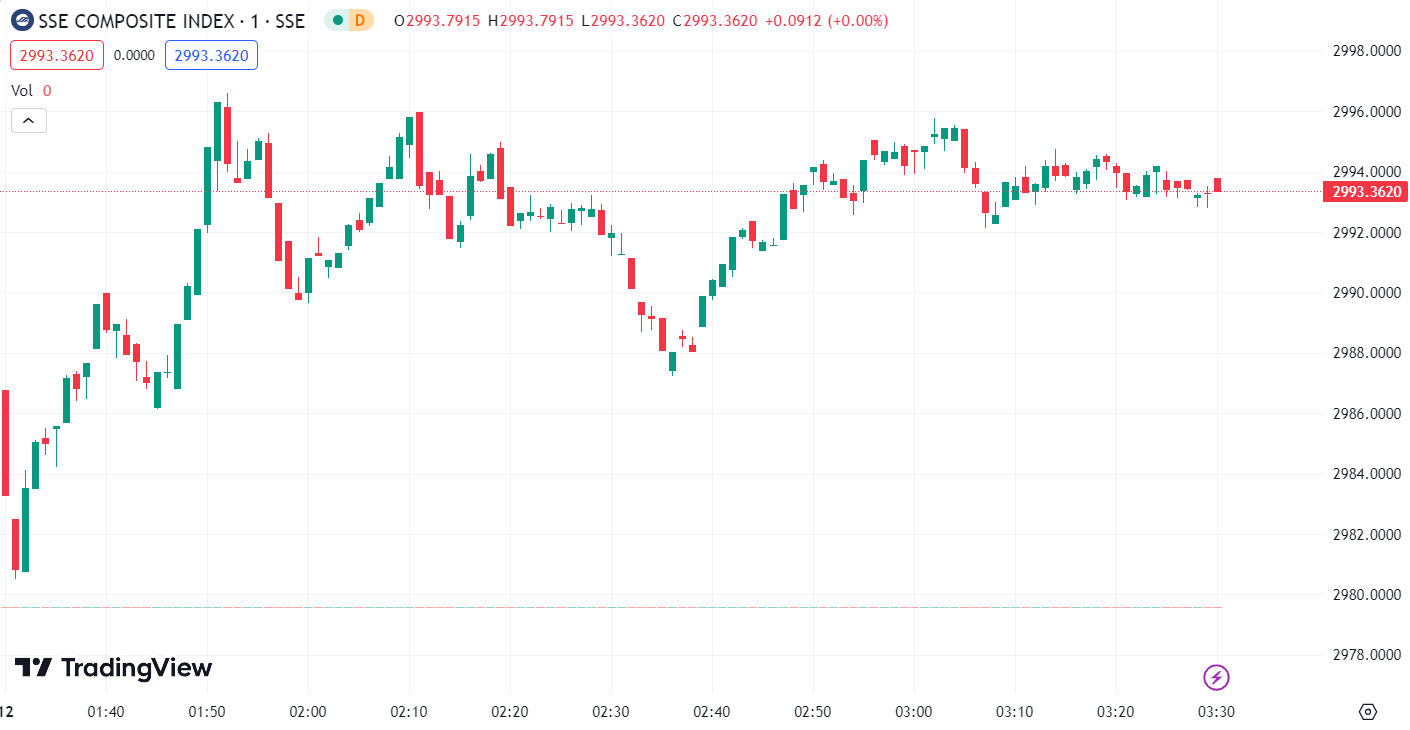 - Shanghai Composite Index (SHCOMP) increased by 0.06%, closing at 2,993.36.