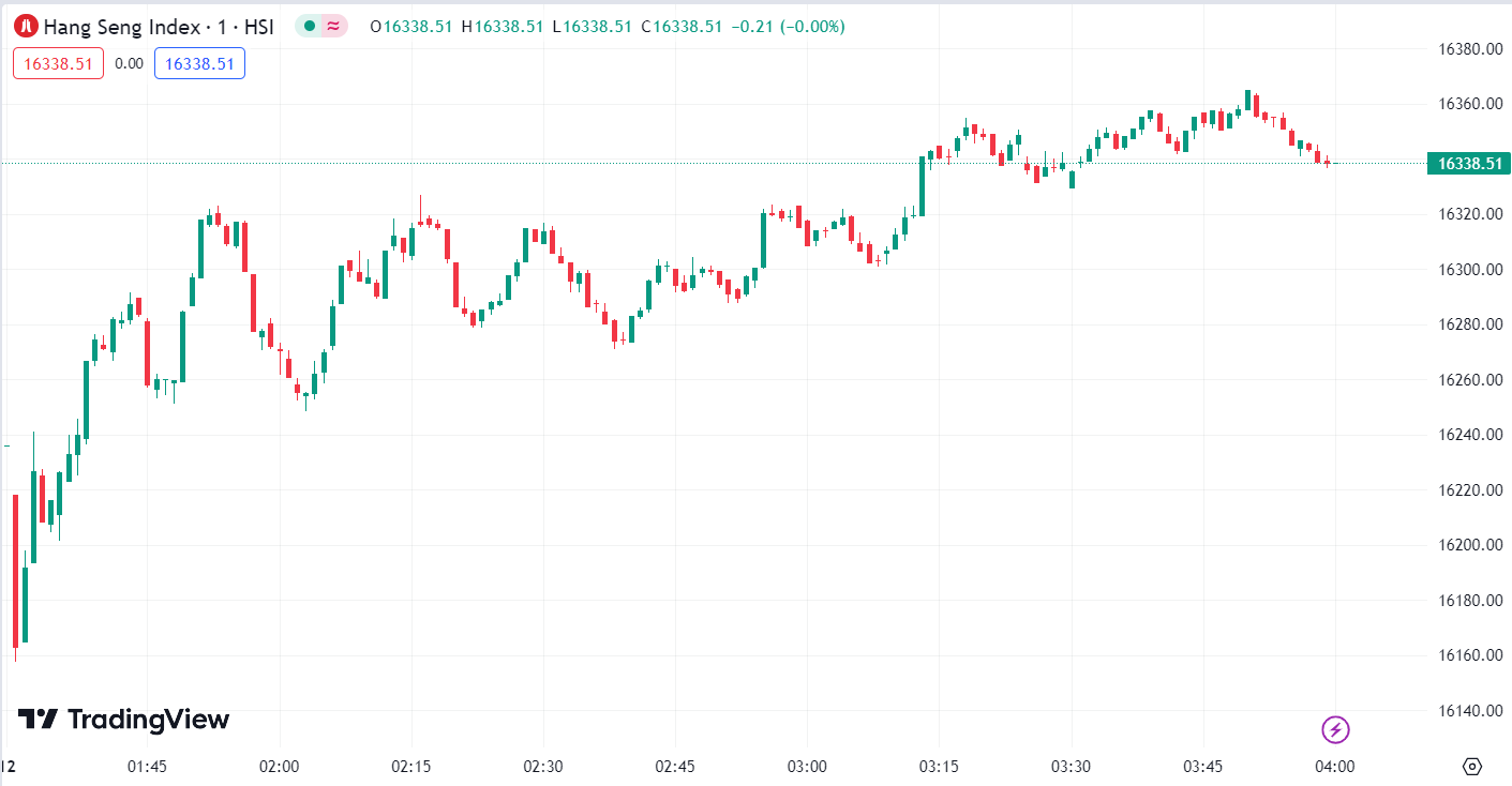 - Hang Seng Index (HSI) increased by 0.85%, closing at 16,338.51.