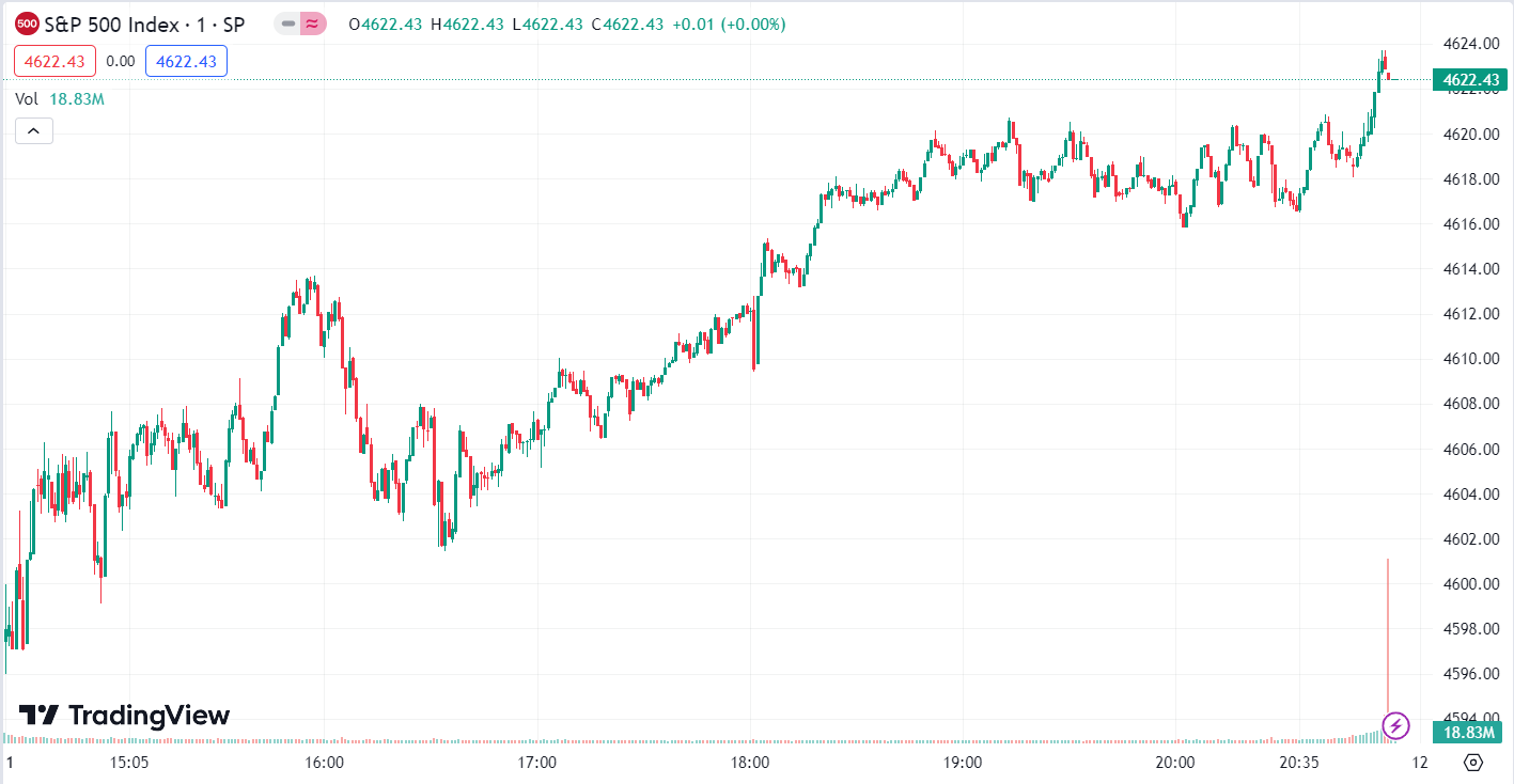 - S&P 500 Index gained 18.07 points, up 0.39%, closing at 4,622.44.