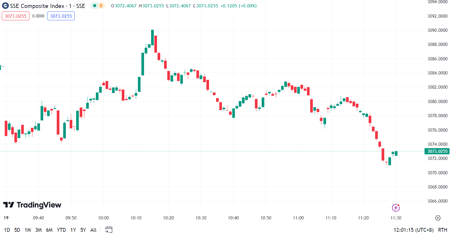 • Shanghai Composite Index (SHCOMP) fell by 0.9% to close at 3,073.03 points.
