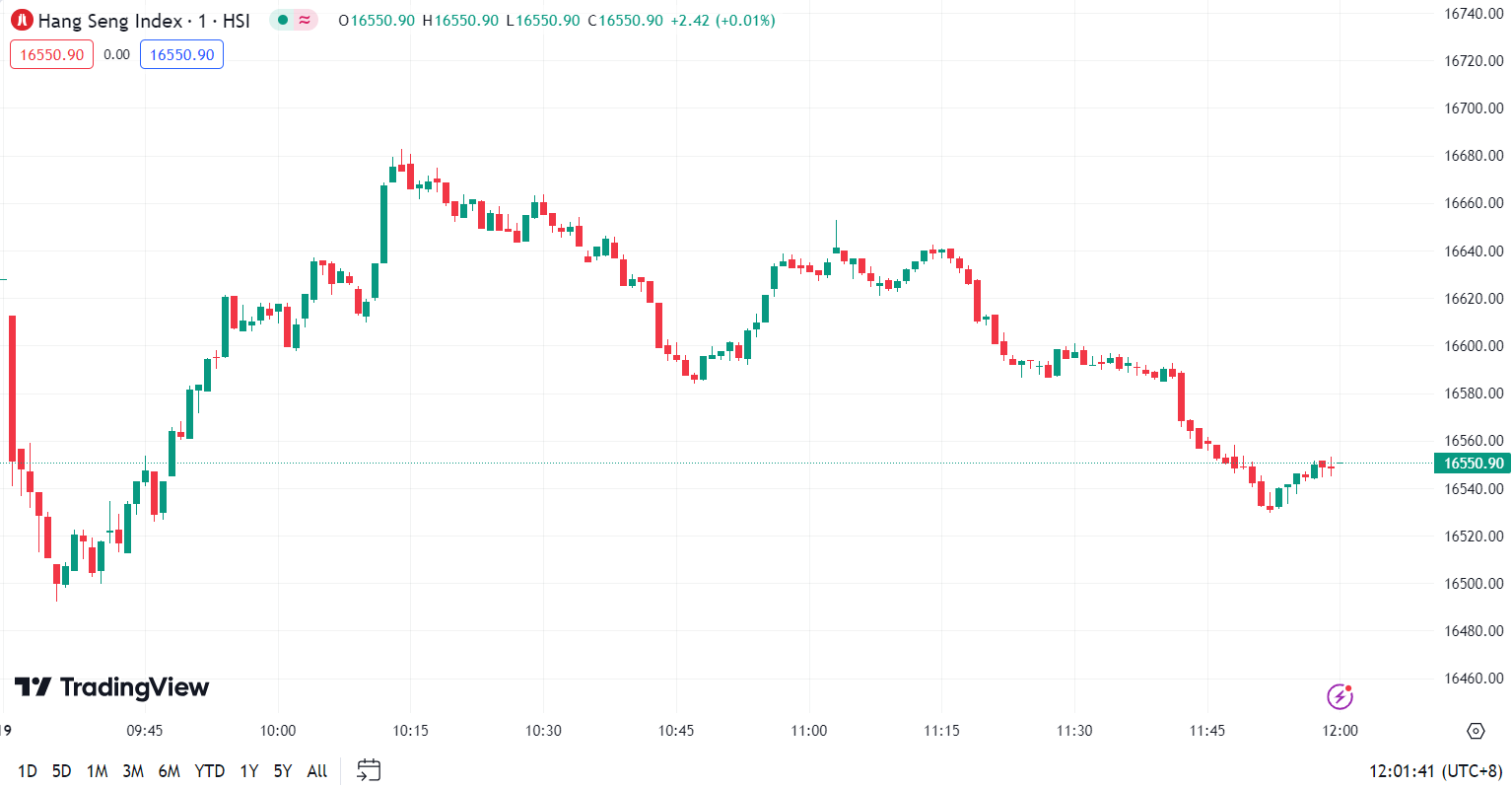 • Hang Seng Index (HSI) fell by 1.11% to close at 16,550.90 points.