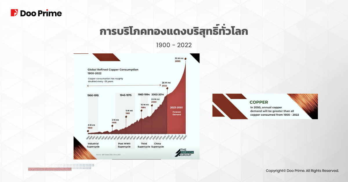• ความก้าวหน้าทางเทคโนโลยี: ทองแดงเป็นส่วนประกอบสำคัญในอุตสาหกรรมเซมิคอนดักเตอร์ ซึ่งเป็นหัวใจสำคัญของเทคโนโลยีสมัยใหม่ รวมถึงการเติบโตของภาคส่วนต่างๆ เช่น ยานพาหนะไฟฟ้าและพลังงานหมุนเวียนที่พึ่งพาทองแดงอย่างมาก ทำให้ความต้องการยังคงอยู่ในระดับที่สูง