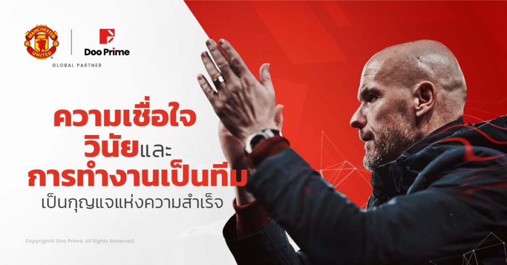 นอกเหนือจากสีแดงที่เป็นสีของแบรนด์ที่มีร่วมกันแล้ว พาร์ทเนอร์ทั้งสองยังมีสิ่งที่คล้ายคลึงกัน คือ ค่านิยม จรรยาบรรณในการทำงาน และเจตจำนงที่มุ่งมั่นสู่ความสำเร็จอย่างไม่ย่อท้อ ซึ่งเป็นผลมาจากผู้จัดการทีมในปัจจุบัน คือ ‘เอริก เทน ฮาก’ (Erik Ten Hag) ซึ่งนับตั้งแต่ได้แต่งตั้งเขามา เขาได้ปลูกฝังความมุ่งมั่นสู่ชัยชนะกลับคืนสู่ทีม เขาได้สร้างทีมที่มีความมุ่งมั่นและได้ปลูกฝังค่านิยมต่างๆ ของสโมสรด้วย เช่นเดียวกับที่เรามีให้กับพนักงานทุกคนที่ Doo Group ที่ได้มาเป็นผู้นำร่วมกับทีมผู้บริหารของเรา