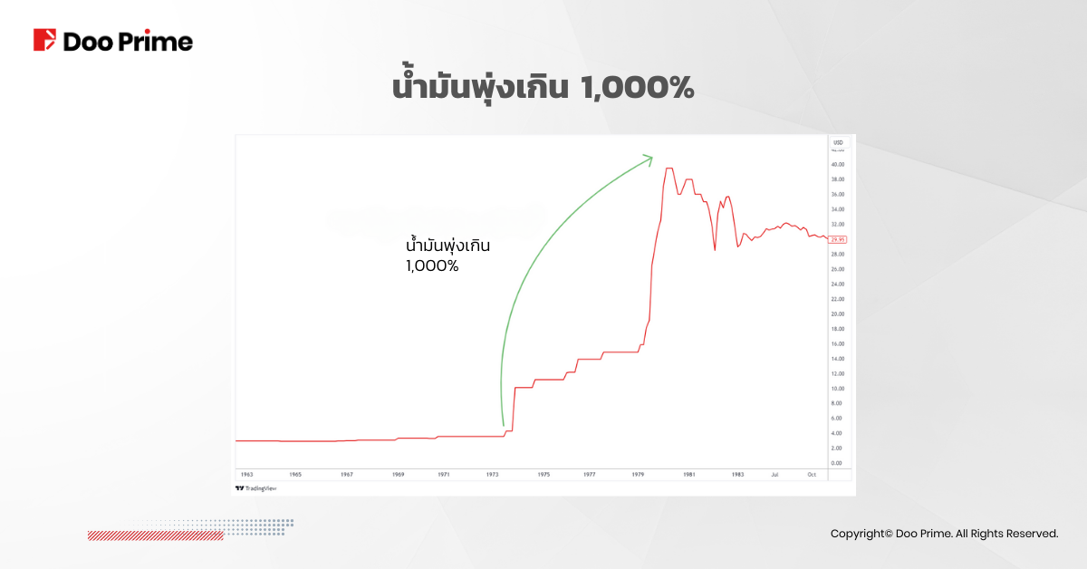 ในช่วงภาวะ Stagflation ในทศวรรษ 1970 ราคาน้ำมันมีความผันผวนอย่างมาก โดยพุ่งสูงขึ้นกว่า 1,000% วิกฤตการณ์น้ำมันในปี 1973 เกิดจากการที่โอเปกสั่งห้ามการผลิตและส่งออกน้ำมันอย่างจำกัดจากประเทศกลุ่มโอเปก ทำให้เกิดภาวะ Supply shock อย่างมีนัยสำคัญ และเป็นผลให้ราคาน้ำมันพุ่งสูงขึ้นอย่างรวดเร็ว การขึ้นของราคาอย่างรวดเร็วนี้ยังคงมีอยู่ โดยถทำจุดสูงสุดระหว่างปี 1980 ถึง 1981 ซึ่งทำให้เกิดแรงกดดันด้านเงินเฟ้อทั่วโลก