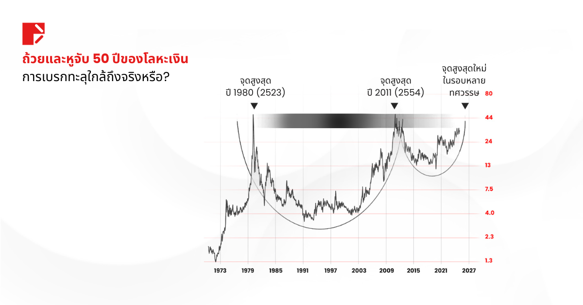 ระดับราคา $50 ไม่ได้เป็นเพียงแค่เป้าหมายด้านตัวเลขเท่านั้น แต่มันคือ “จุดเปลี่ยนทางจิตวิทยา” ซึ่งเป็นแนวต้านสำคัญที่กินระยะเวลานานหลายสิบปี หากสามารถทะลุผ่านไปได้ อาจทำให้ซิลเวอร์เข้าสู่การปรับฐานราคาใหม่ทั้งระบบ