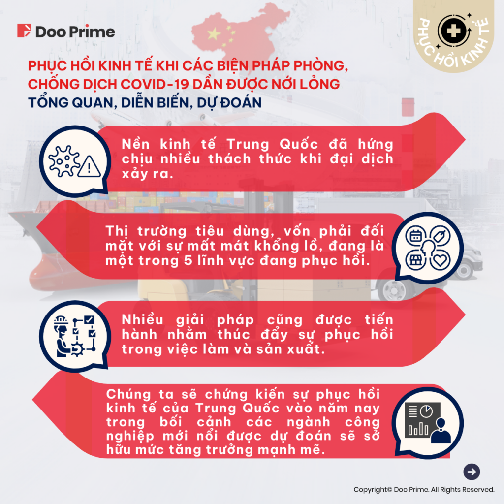 Vào ngày 7 tháng 12 năm 2022, Trung Quốc – nền kinh tế lớn thứ hai thế giới đã nới lỏng chiến lược Không Covid được thiết lập vào ba năm trước đó. Với sự áp dụng của chính sách trên, nền kinh tế Trung Quốc đã phải đối mặt với hàng loạt các thách thức khác nhau kể từ khi dịch bệnh chính thức bắt đầu. Tuy nhiên, với việc Trung Quốc tiến hành xoay trục khỏi chiến lược có phần hà khắc trên, nền kinh tế của nước này đã có dấu hiệu phục hồi kể từ cuối tháng 12 và dự kiến sẽ tiếp tục phục hồi mạnh mẽ hơn nữa trong thời gian sắp tới.